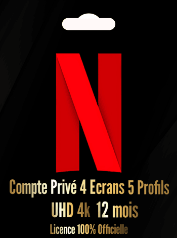 Compte Privé Netflix Premium 4 écrans 5 Profils 12 Mois